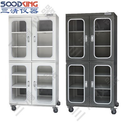 表面處理:電子防潮箱箱體表面由靜電噴塑而成,耐腐蝕,耐刮擦。普通機型防潮箱采用灰白色橘紋烤漆。防靜電機型防潮箱采用永久性藍(lán)黑色靜電烤漆,靜電阻值為106~ 109歐姆,符合防靜電標(biāo)準(zhǔn),更好的保護(hù)存放的元器件的安全。